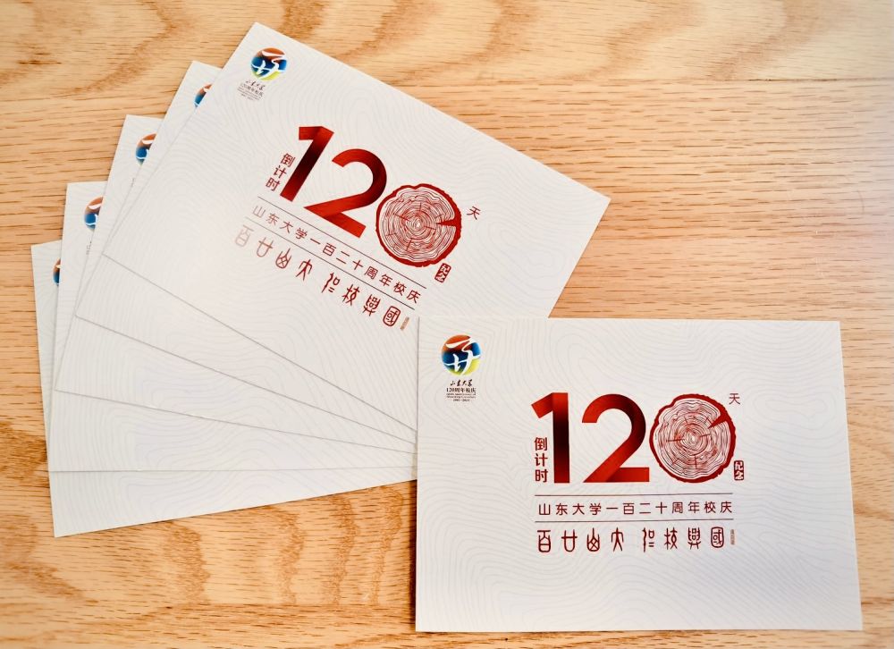 为更好纪念山东大学建校120周年,中国邮政将专门为山东大学陆续推出纪念邮票、系列纪念封、专属明信片和主题文创产品。在校庆倒计时120天之际,中国邮政发行专门纪念封和专属明信片一枚,并特意在一校三地八个校园分别设置了临时邮局。纪念封以群山环绕的山大为元素设计,配以“贺”主图加校庆标识个性化邮票,每枚封带有唯一编号;明信片以年轮为设计元素,寓意百廿山大,根深叶茂,为天下储人才,配以“福”主图加校徽标识个性化邮票。(完)