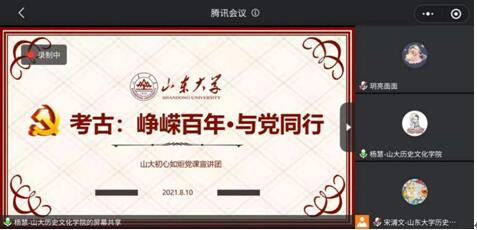 宣讲团成员刘奕璇、杨慧以“峥嵘百年与党同行”为主题进行宣讲,围绕中国共产党与考古学的发展与交汇,划分了四个时期具体阐述考古学事业与中国共产党诞生发展间的密切联系,着重介绍了山东大学博物馆及考古学专业的建立与发展,强调了在考古学习与实践中关注时代、关注社会,不断汲取养分,呈现中华文明,以实现中华民族伟大复兴的重要意义。联合宣讲中,中山大学信息管理学院王昊以“图书馆中学党史,图林漫步话名人”为主题进行宣讲。同时,展示了中山大学信息管理学院第一学生党支部党组织的“图林漫步 书海邀游”——名人与图书馆主题展的选题意义、具体内容及活动成效。联合宣讲后,双方成员就宣讲形式、内容、分工及效果等方面展开热烈讨论和交流,为今后支部开展系列宣讲活动提供给了有益的经验借鉴。