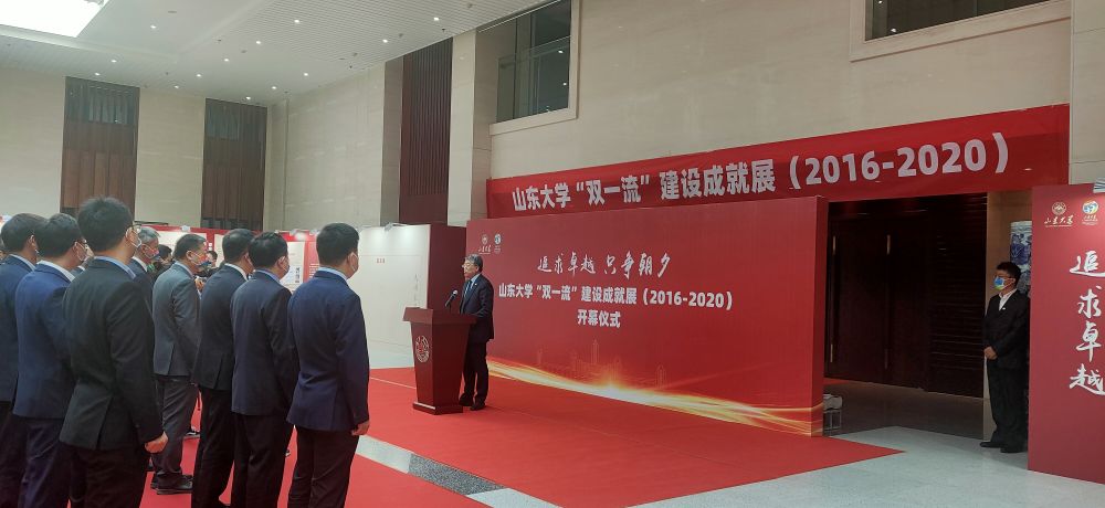 山东大学党委书记郭新立在主持开幕式时说,自入选首批世界一流大学建设A类高校以来,在教育部的正确领导下,在山东省委省政府的大力支持下,在社会各界的热情关心下,在全体山大人的努力拼搏下,山东大学首轮“双一流”建设取得积极成效,实现圆满收官。站在建党百年、建校百廿的历史新起点,学校将不忘初心、牢记使命,追求卓越、只争朝夕,奋力建设担当中华民族复兴大任的世界一流大学。