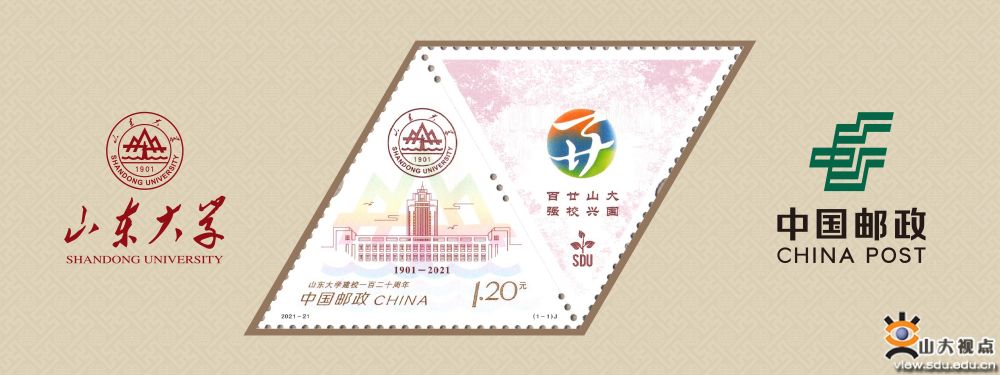 本次发行的《山东大学建校120周年》纪念邮票创新性地采用平行四边形构图和左右分布的格局,形成“一票双图”的视觉效果,左侧画面以山东大学“图书馆”“知新楼”为主体,右侧画面以120周年校庆标识为主体,并衬以山大人熟悉亲切的校园环境作为背景,并采用棕、金双色雕刻的顶级邮票印制工艺,以全新的画面、精湛的工艺,深入诠释出山东大学深厚的历史底蕴和鲜明的文化特色。(完)