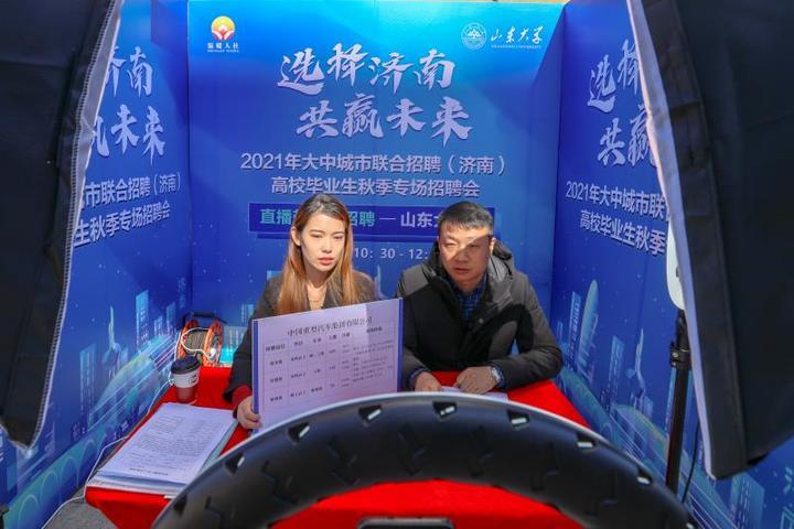 “我们企业不仅有岗位备注的薪资、五险二金,还有租房补贴、人才公寓帮助大家解决住房的后顾之忧……”,在主播的引导下,济南重工集团HR抛出丰厚的条件在线带“岗”,直播间的氛围渐入佳境。为满足不在现场的毕业生求职需求,现场还搭建了“云就业直播间”,中国重汽、山东金钟科技、山东丰汇设备技术、济南重工、济南奥图自动化等6家企业人力资源负责人从企业概况、岗位需求、福利待遇、发展前景等角度逐一进行了介绍,并线上解答求职者提出的问题,吸引着1450名手机屏幕另一端的毕业生们在线投递简历,在线达成就业意向780人。