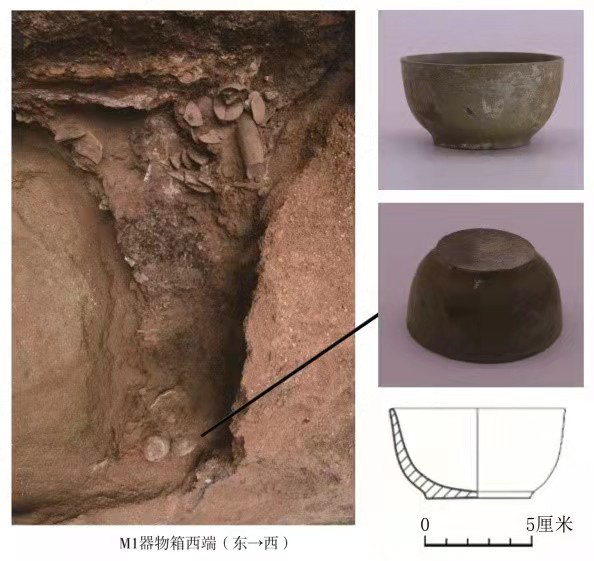 西岗M1:7原始瓷碗及出土位置