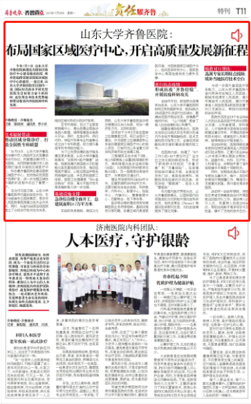 今年7月27日,山东大学齐鲁医院被遴选为国家区域医疗中心输出医院,将承担起跨省建设国家区域医疗中心的重任。一直以来,山东大学齐鲁医院在以国内一流、国际知名高水平研究型医院为目标努力奋斗的同时,也在用自身技术优势辐射带动着省内外医院和学科发展。