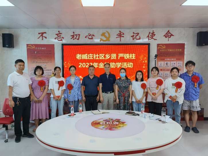 活动中,曾心灵、宋尧玉和臧小顺分别讲话,对社区12名即将进入大学的同学表示祝贺,由衷感谢乡贤企业家严铁柱的无私捐助。严铁柱向山东大学和老臧庄社区提供这样一个爱心助学平台表示感谢,为考入大学的学生每人发放1000元捐助奖学金,鼓励其继续求学上进,日后能成为报效家乡和社会的栋梁之才。