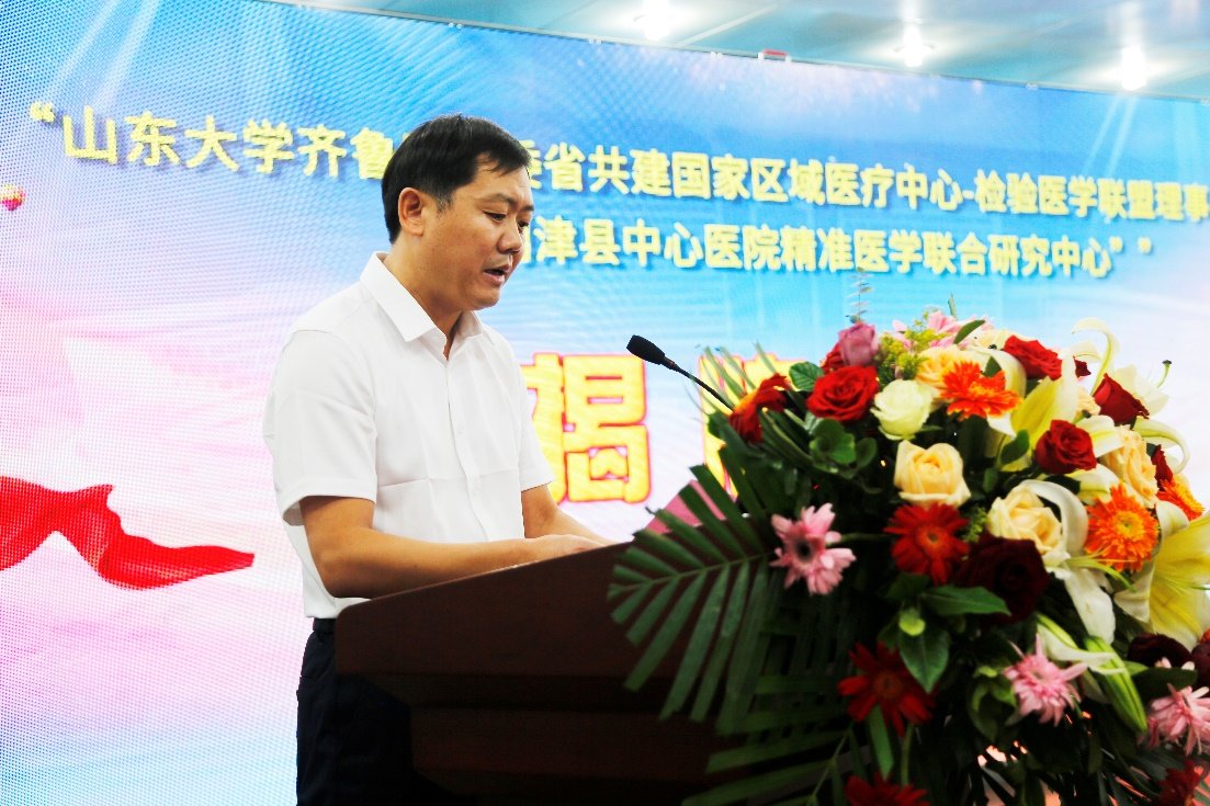 山东大学齐鲁医院副院长韩辉、利津县副县长王金娥、山东大学齐鲁医院检验医学中心主任张义、利津县中心医院书记周东华共同为“山东大学齐鲁医院委省共建国家区域医疗中心-检验医学联盟理事单位”、“利津县中心医院精准医学联合研究中心”揭牌,此次揭牌仪式圆满完成!