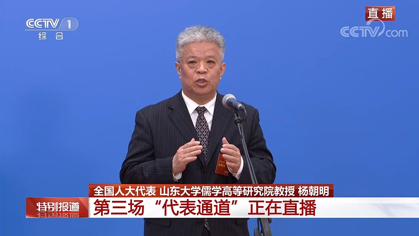 中国青年报客户端北京3月12日电(中青报·中青网记者 刘尚君 王豪 张艺)十四届全国人大一次会议第三场“代表通道”上,作为从事中国传统文化研究的学者,全国人大代表、山东大学儒学高等研究院教授杨朝明讲述了自己参与传承、弘扬中华优秀传统文化的故事。