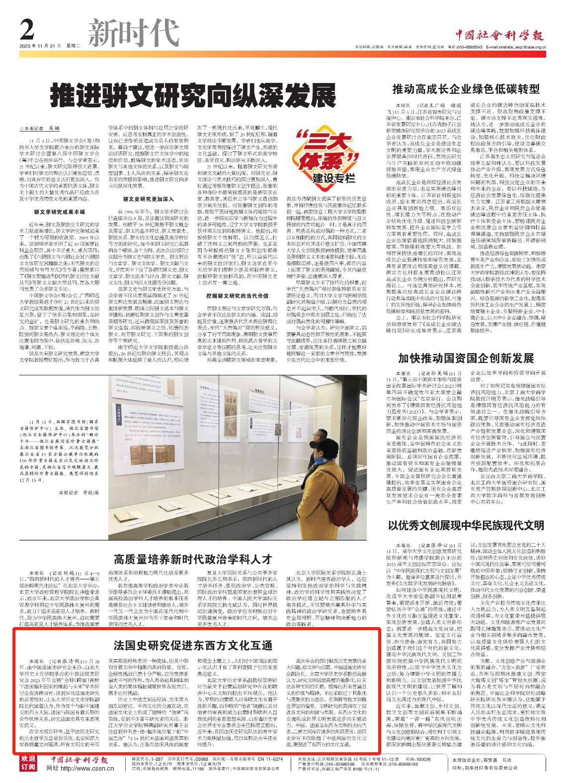 本报讯(记者张清俐)10月28日,由中国法国史研究会主办、山东大学历史文化学院承办的中国法国史研究会2023年年会暨“全球(跨国)视野下法国福利国家的缘起与未来”学术研讨会在济南召开。谈到深化法国史研究的必要性时,山东大学历史文化学院副院长代国玺认为,作为首个与新中国建交的西方大国,法国与我国有着长期的合作伙伴关系,研究法国史具有重要现实意义。