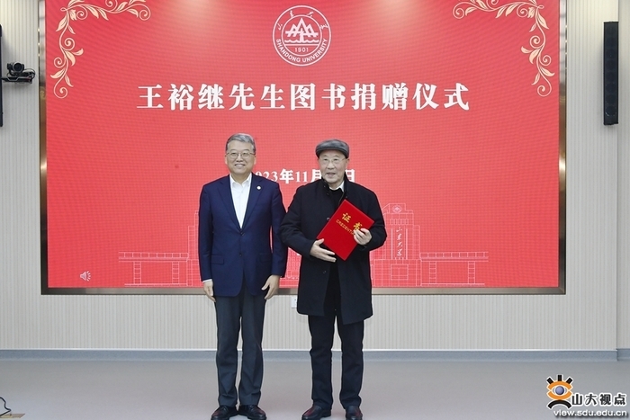 近日,王裕继先生图书捐赠仪式在山东大学中心校区举行。仪式上,王裕继及其家族代表共捐赠图书161种556册、琅琊王氏古琴一床,由山东大学图书馆接收。山东大学党委书记郭新立向王裕继颁发捐赠证书,并送上鲜花与纪念品。