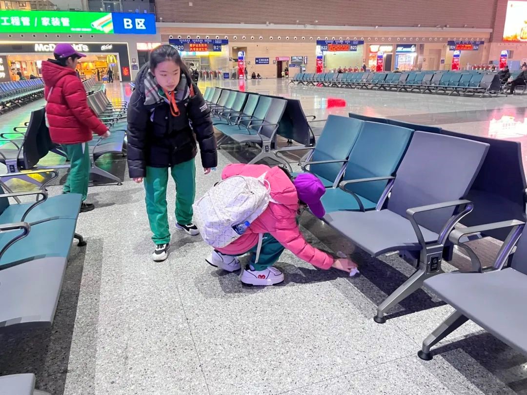 漫长的等待中,学生们在车站上安心完成研学写作任务,静心读书、读报,几位同学还意外地成为了拾金不昧,乐于助人的“小雷锋”。
