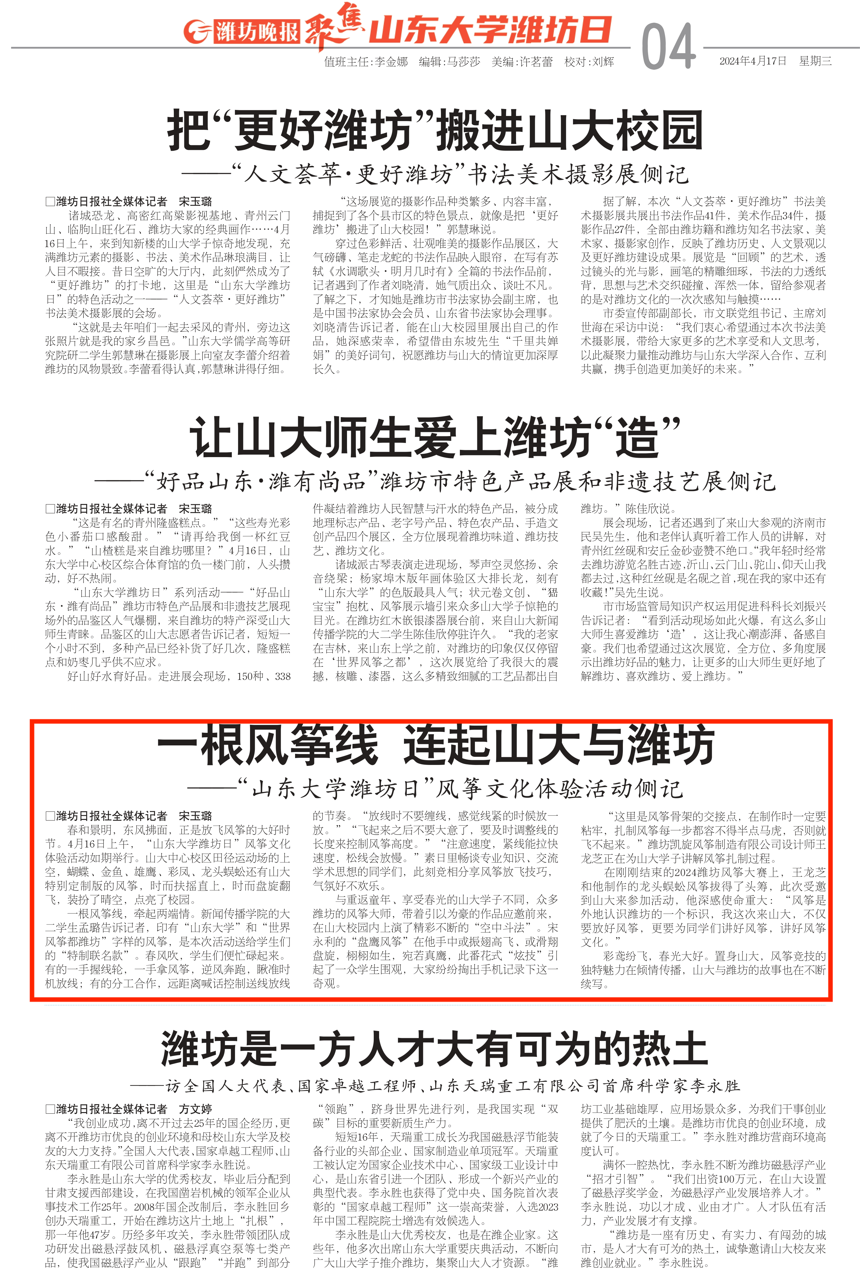 彩鸢纷飞,春光大好。置身山大,风筝竞技的独特魅力在倾情传播,山大与潍坊的故事也在不断续写。