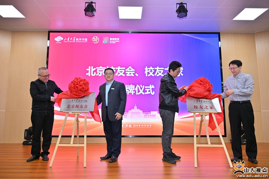 软件学院副院长许信顺、刘士军与校友代表张明钟、杨晓科共同为山东大学软件学院北京校友会和“校友之家”揭牌。张明钟作发言。