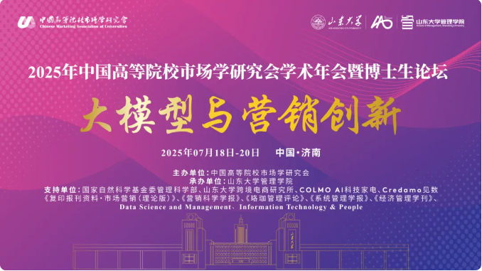 近日,2025年中国高等院校市场学研究会学术年会暨博士生论坛在山东大学举办。本次年会以“大模型与营销创新”为主题。山东大学党委常委、副校长曹现强,中国高等院校市场学研究会会长汪涛,山东大学管理学院院长丁荣贵参加年会并致辞。