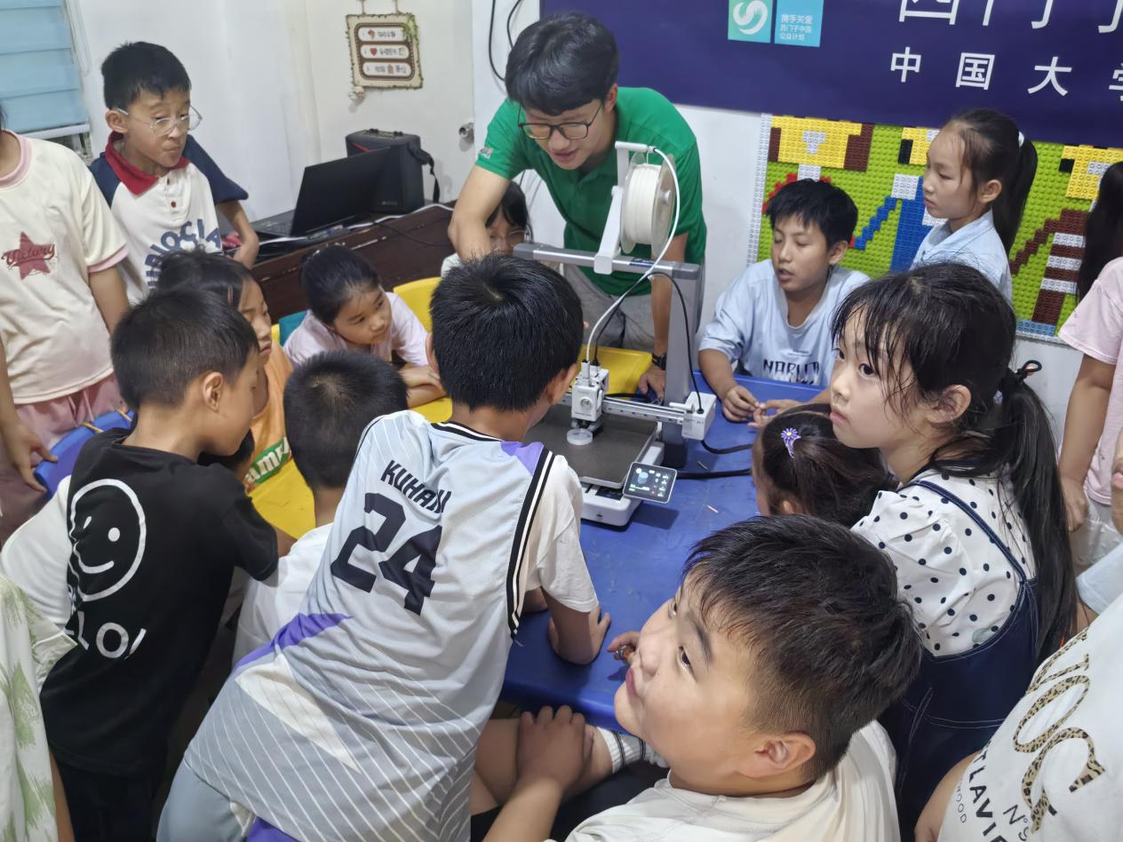 特别值得一提的是,气候变化已成为当今的讨论热点。孩子们在课堂上学习了解到当前全球变暖的紧迫性,并探讨了如何个人行动。在整个支教过程中,科技元素贯穿始终。无论是AI创意实践活动还是3D打印课,都让孩子们近距离接触到了前沿技术,激发了他们对科学的兴趣。例如,在一次AI创意实践课上,孩子们使用关键词生成属于自己的“精灵”,并通过3D打印将其变为现实,这无疑是一次难忘的经历。