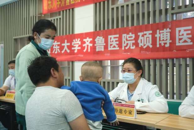 “齐鲁硕博医疗服务团”奔赴边疆基层义诊现场。山东大学供图