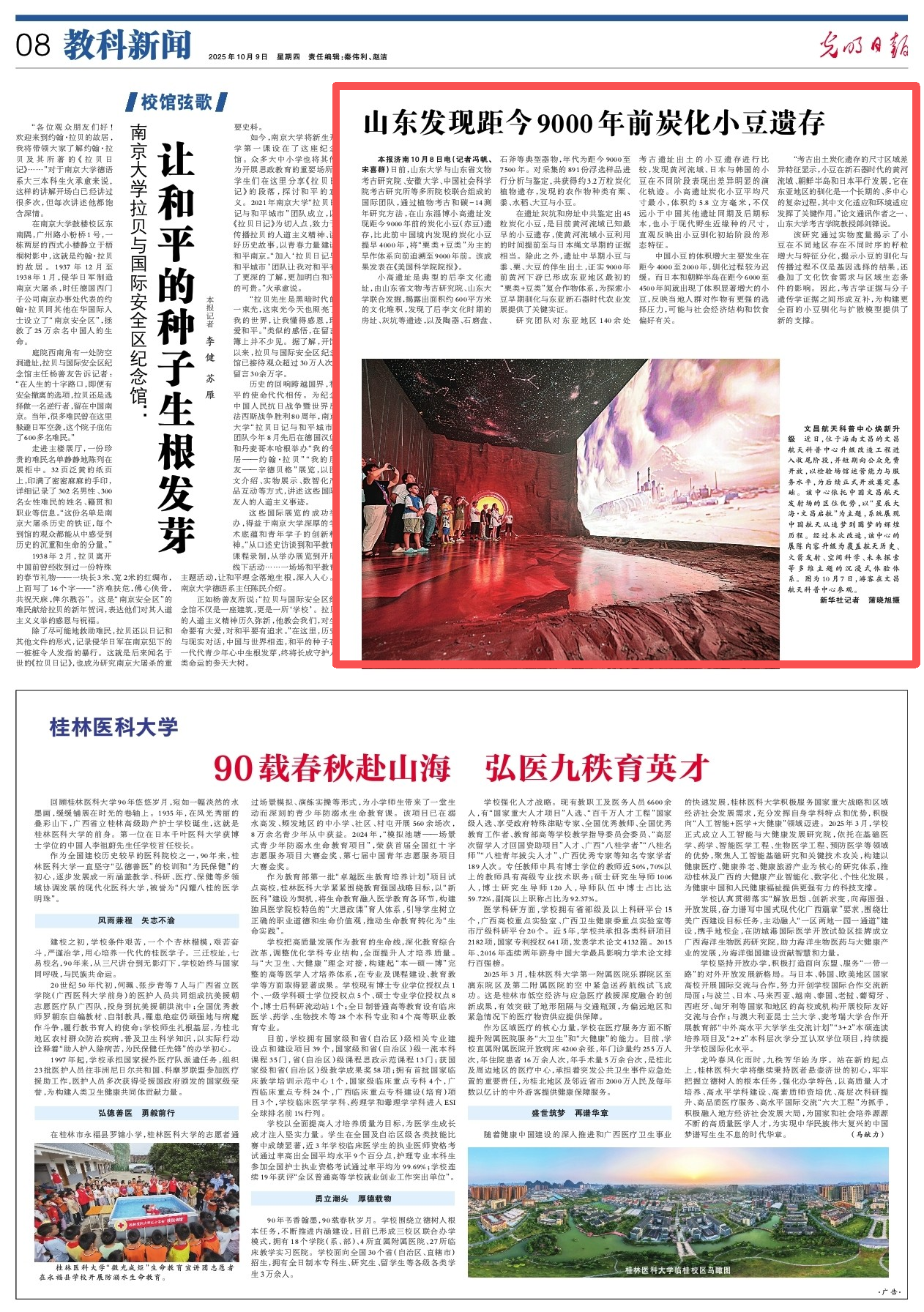 本报济南10月8日电(记者冯帆、宋喜群)日前,山东大学与山东省文物考古研究院、安徽大学、中国社会科学院考古研究所等多所院校联合组成的国际团队,通过植物考古和碳-14测年研究方法,在山东淄博小高遗址发现距今9000年前的炭化小豆(赤豆)遗存,比此前中国境内发现的炭化小豆提早4000年,将“粟类+豆类”为主的旱作体系向前追溯至9000年前。该成果发表在《美国科学院院报》。
