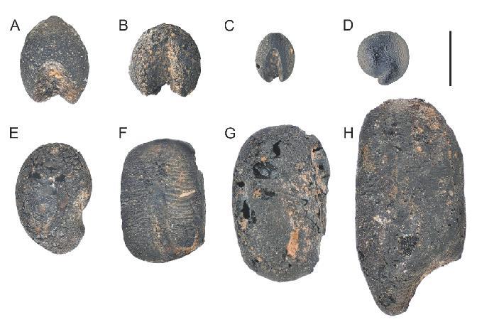 图①:小高遗址出土的炭化植物种子。