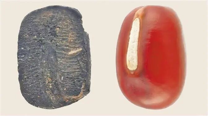 考古出土炭化小豆与现代小豆样品。