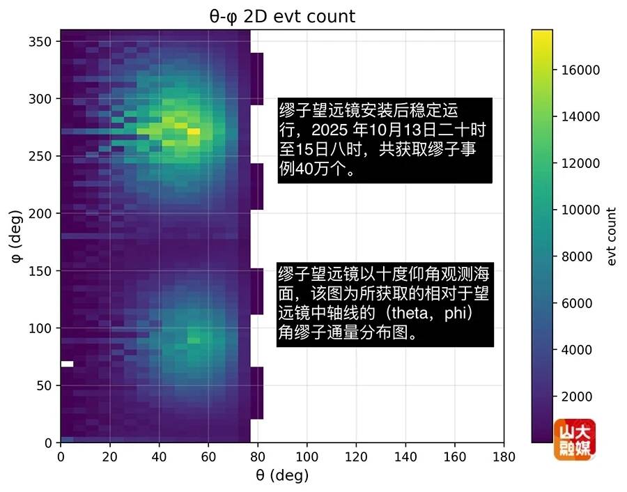 大气缪子产生于宇宙射线与地球上层大气的相互作用,随后穿透大气层到达海平面。在穿越大气的过程中,缪子会被大气物质吸收,其吸收程度与大气密度和穿越距离呈正相关:大气密度越高、穿越距离越长,抵达海平面的缪子计数率就越低。这一物理机制为台风观测提供了新的技术途径。台风发生时,强烈的气流运动会显著改变区域内的大气密度结构,这种变化将直接体现在海平面缪子计数率的波动上。借助缪子望远镜对缪子计数率的高精度监测与分析,研究人员能够反演出台风影响区域内的大气密度分布,从而实现对台风密度结构的“成像”观测。下一步,研究团队将持续对缪子望远镜的观测数据进行分析与验证,进一步优化设备性能,推动该技术在台风监测及更广泛大气物理研究中的应用。