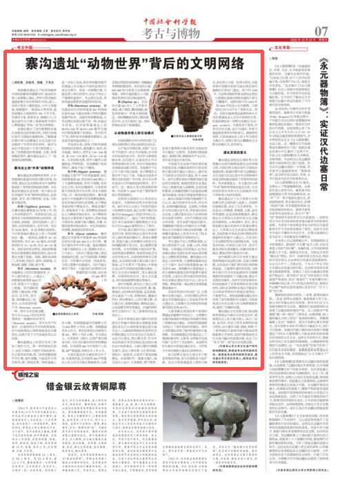 寨沟遗址文化发展方面,除动物种类表现出与南北文化的互动外,更体现在出土的大量文物上,如大三足瓮、金耳环、环首刀等具有鲜明的地方特色,而大量车马器、铜钺、骨柶、牛卜骨和绿松石装饰风格与殷商高等级墓葬几乎相同,是商代晚期农牧文化交流与融合的直接证据,见证了从“多元”到“一体”的历史发展过程。