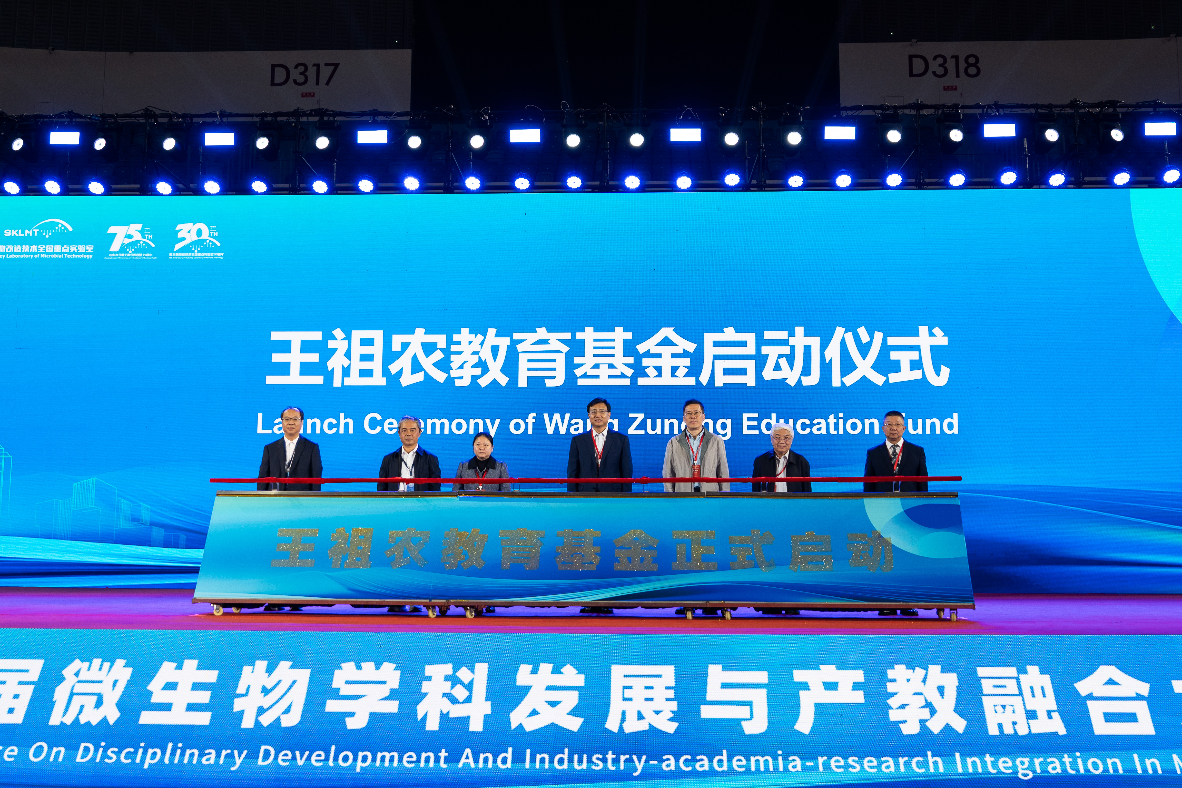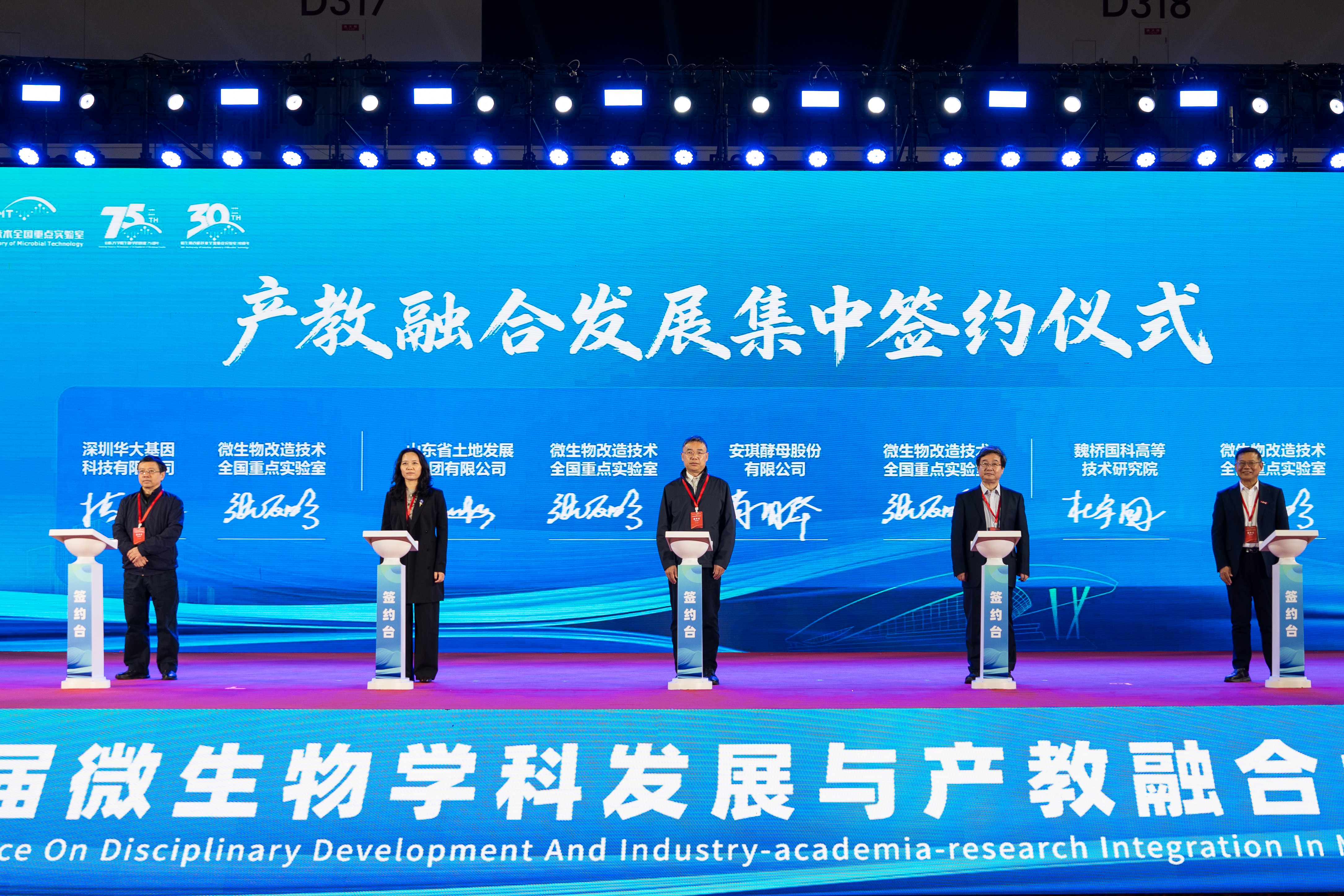 会上,微生物改造技术全国重点实验室形象片《山河入微》正式发布,“中欧生物制造联合论坛”正式启动。期间,“产教融合发展集中签约仪式”举行,山东大学与深圳华大基因股份有限公司等多家企业签订战略合作协议,“王祖农教育基金”启动仪式也顺利举行。