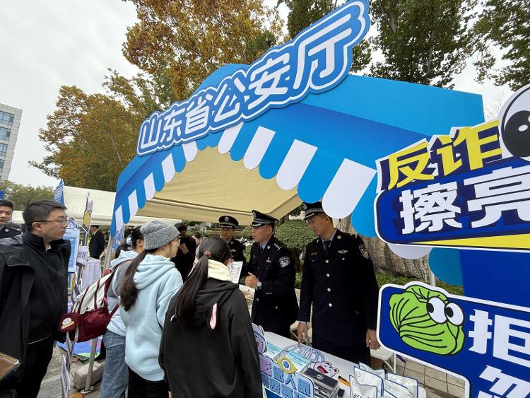 山东高校反诈联盟授旗仪式将活动推向了高潮。活动期间,山东省公安厅、省教育厅向山东大学、山东师范大学等10所学校学生代表授旗,并组建以高校学生为主力的“反诈战队”,这标志着山东高校反诈联盟正式成立,山东省反诈网络体系进一步完善,常态化宣传教育机制迈入新阶段。现场,相关单位以及高校的学生代表发起“青年反诈在行动”联合倡议,号召全体师生学习反诈知识,承诺用行动联合筑牢校园安全坚固屏障,践行青春担当,彰显青春力量。