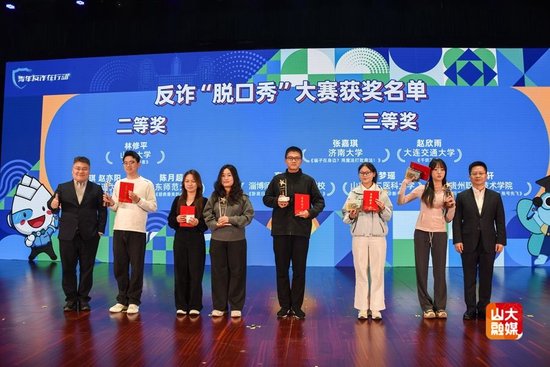 活动一改传统反诈宣传“生硬说教”的模式,巧妙采用大学生喜闻乐见的脱口秀形式,将反诈知识融入诙谐幽默的表演,现场反响热烈,让同学们在欢声笑语中增强防骗“免疫力”。山大学子武琳的作品《拒绝诈骗,从我做起》、林修平的作品《反诈三件套》凭借出色的创意脱颖而出,分别荣获一等奖、二等奖。