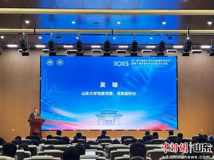 29日,山东大学党委常委、常务副校长吴臻在第三届齐鲁医学博士后高端学术论坛上致辞。高艺芯 摄