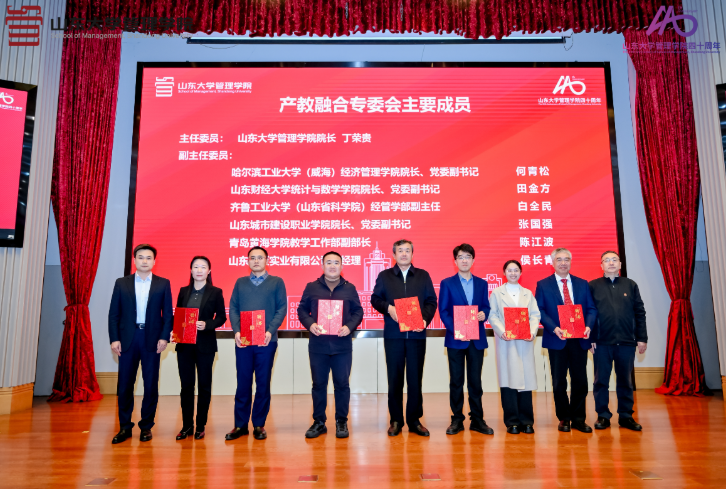 为推动产教深度融合,促进“四链”精准衔接,为鲁商高质量发展与山东经济提质增效注入强劲动力,山东大学管理学院牵头成立了山东省厚道鲁商促进会产教融合专业委员会。大会举行成立仪式,凌沛学与丁荣贵共同揭牌。山东省厚道鲁商促进会副会长兼秘书长齐菲为共同发起单位授牌。凌沛学为专委会成员代表颁发聘书。