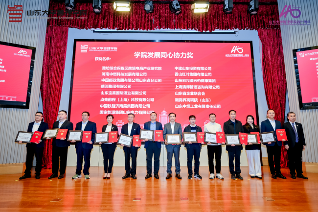 岁月不居,时节如流;是管院教师用担当与智慧破解难题,见证了从40年来从青涩走向成熟的管理学院。群策群力,同舟共济;是学界同仁以协同创新之力为帆,为未来征程汇聚动能。同心如炬,照亮前路;是合作企业为学院建设注入活水、搭建平台。会上,李向阳、丁荣贵和学院党委书记付岩志分别为推动学院事业发展的教师、学界与企业代表颁发了“学院发展突出贡献奖”“学院发展重大支持奖”及“学院发展同心协力奖”。