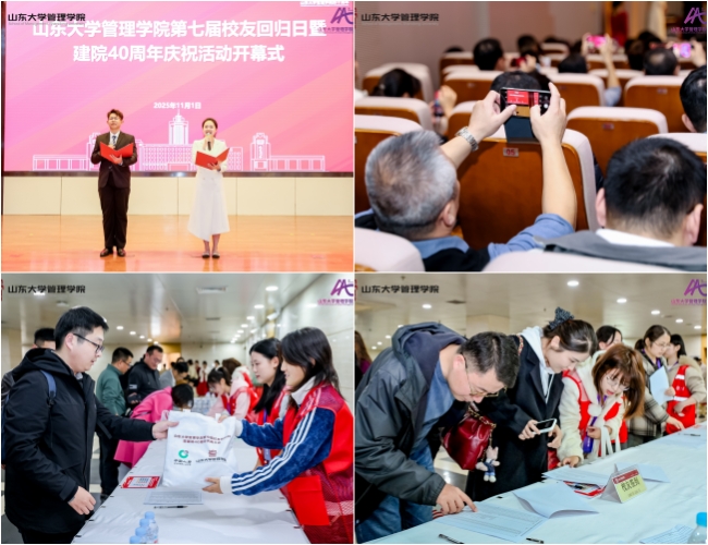 四秩春秋育桃李,万千俊彦谱华章。为庆祝山东大学124周年华诞与管理学院建院40周年,11月1日,山东大学管理学院第七届校友回归日暨建院40周年庆祝活动隆重举行。来自社会各界的重要嘉宾与学院历届校友代表共计500余人齐聚盛会,共叙师生情谊,共谋发展道路,一同见证山东大学管理学院建院40周年这一里程碑时刻。