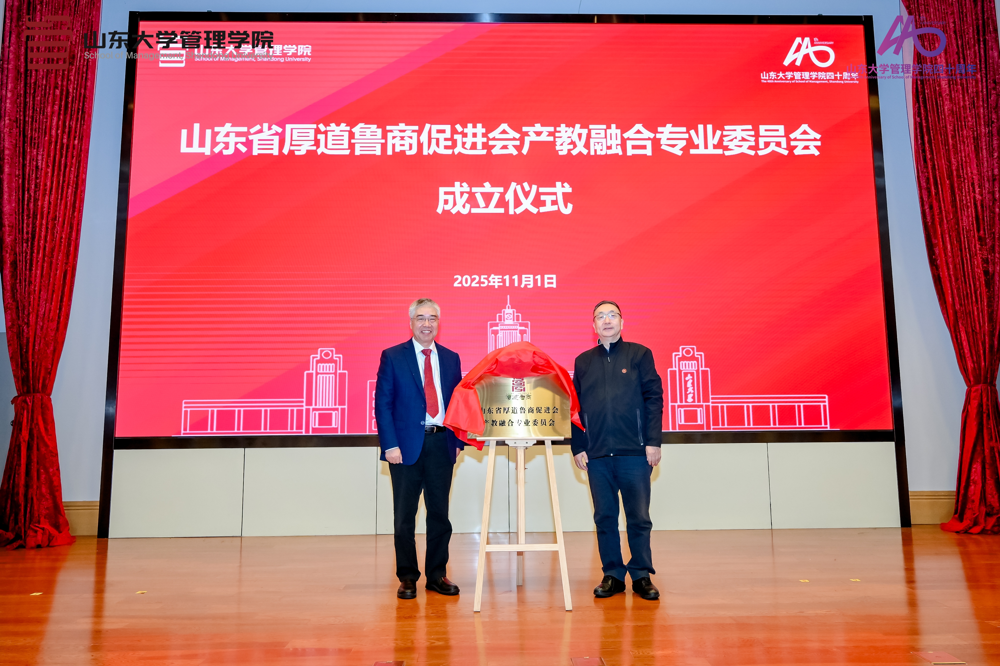 为推动产教深度融合,促进“四链”精准衔接,为鲁商高质量发展与山东经济提质增效注入强劲动力,山东大学管理学院牵头成立了山东省厚道鲁商促进会产教融合专业委员会。大会举行成立仪式,凌沛学与丁荣贵共同揭牌。山东省厚道鲁商促进会副会长兼秘书长齐菲为共同发起单位授牌。凌沛学为专委会成员代表颁发聘书。