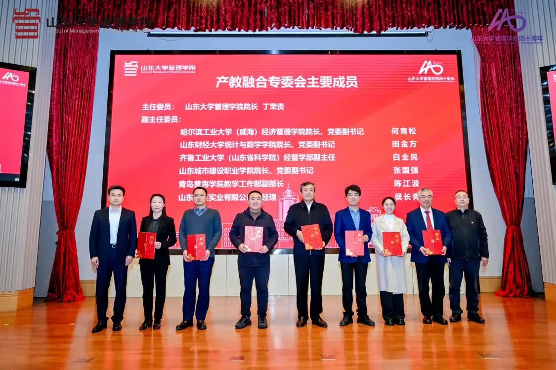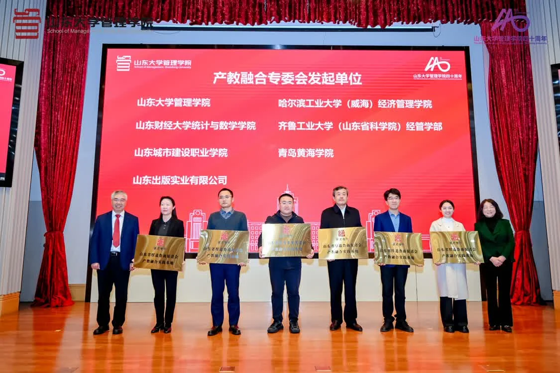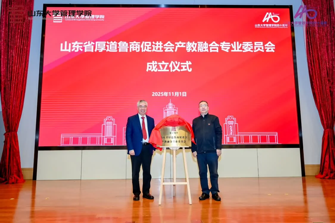 为推动产教深度融合,促进“四链”精准衔接,为鲁商高质量发展与山东经济提质增效注入强劲动力,山东大学管理学院牵头成立了山东省厚道鲁商促进会产教融合专业委员会。大会举行成立仪式,凌沛学与丁荣贵共同揭牌。山东省厚道鲁商促进会副会长兼秘书长齐菲为共同发起单位授牌。凌沛学为专委会成员代表颁发聘书。