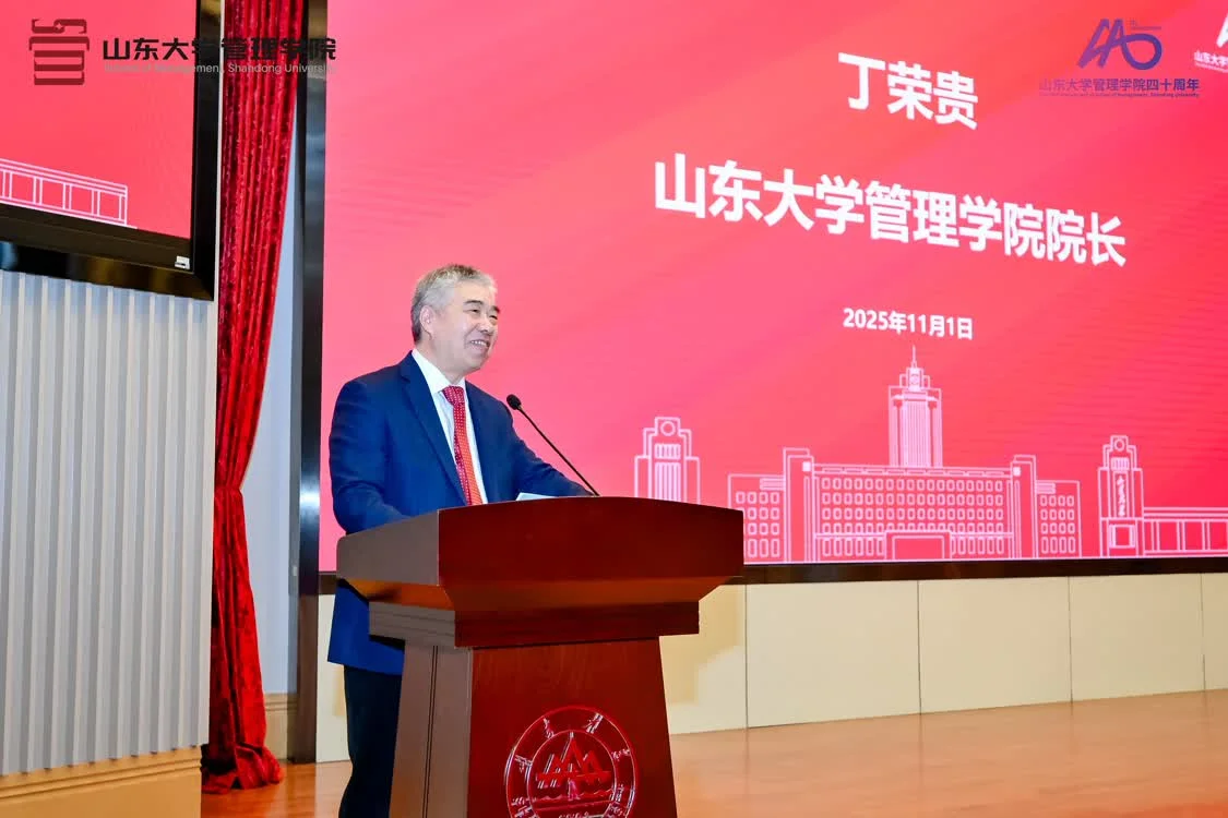 丁荣贵回望了学院四十载的发展历程。与时代共舞、与国家同频、与山大共荣的管理学院离不开一群人的坚守与担当。他代表学院,向始终关心支持学院发展的各方力量致以诚挚谢意,他指出,学院将以学科交叉、产教融合和海外拓展“三大战役”积极面向国家战略需求与企业发展,呼吁广大校友始终与学院同心同向,做新质管理学科的开拓者与践行者,在建设“成为最懂文化、最能担当、最讲情义的管理学院”创新征途上一往无前,勇毅笃行!