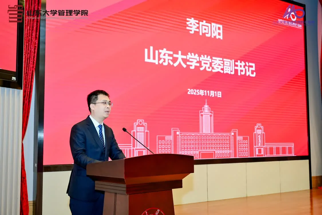 李向阳在致辞中系统介绍了山东大学近年来在人才培养、学科建设、人才队伍、科研水平、对外合作和社会服务六个方面的发展成就,指出管理学院已稳步成长为中国管理创新的策源地与高端人才培养的重要高地,并对学院立于新起点上的发展提出了展望。他表示,学院的成就离不开万千“管院人”——从筚路蓝缕的开拓者、深耕不辍的耕耘者到倾心助力的守护者,这背后,无不彰显着他们以家国情怀书写责任答卷的担当;而学院的未来发展,更需要每一位“管院人”的求知、实干、深耕与开拓,为母校立德树人、强校兴国凝聚力量。他强调,学院应与广大校友一道,着力构建服务国家发展、事业成长、情感共鸣的共同体,在深化产教融合、助力区域建设、服务国家战略中展现更大作为,共同为中国式现代化伟业贡献山大智慧与力量!