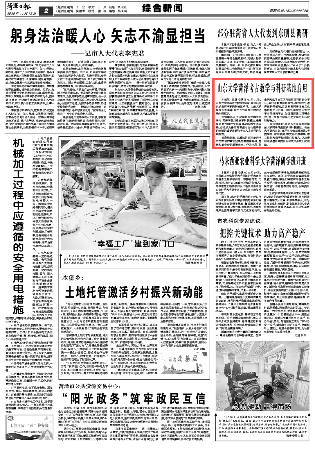 11月11日,山东大学菏泽考古教学与科研基地启用仪式在菏泽学院东校区举行。山东大学副校长朱德建、副市长刘连栋出席活动并分别致辞。