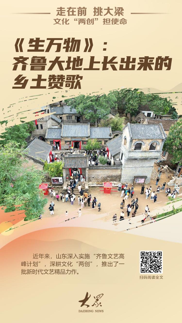 近年来,山东深入实施“齐鲁文艺高峰计划”,深耕文化“两创”,推出了一批新时代文艺精品力作。《生万物》之外,电视剧《我们的河山》实现收视口碑双丰收;《文脉中华——春秋》《武梁祠》等文化类纪录片深度传播中华历史遗产;《戏宇宙》《黄河文化大会》等文综节目创新艺术表达形式,“破壁”传播;《国秀·琅琊》《奇幻聊斋》等全景沉浸式演艺项目,以科技赋能文化传承,演绎中国故事。