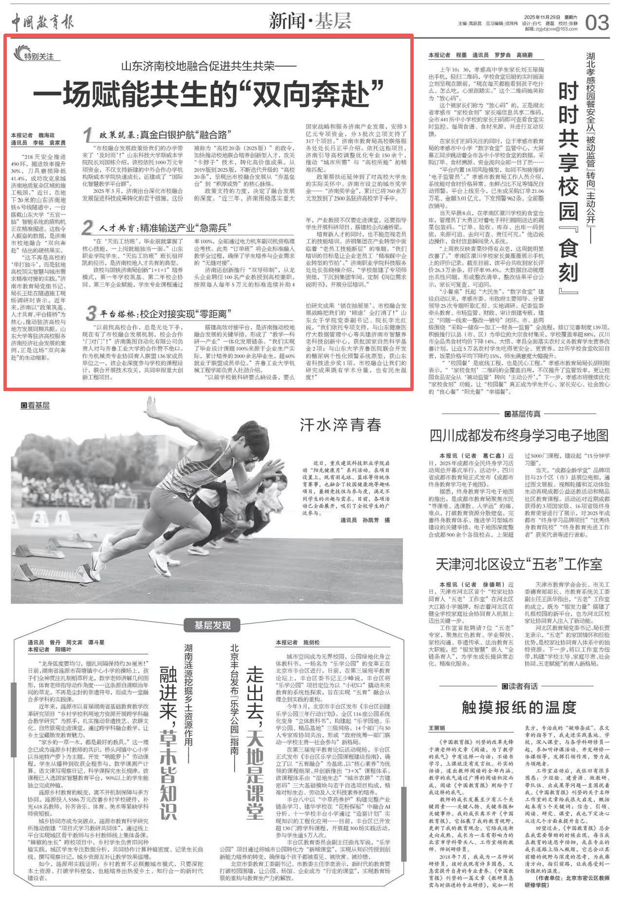 “这不再是高校的‘单打独斗’,而是驻地高校顶尖智慧与城市需求精准对接的实践。”济南市教育局党组书记、局长王纮在隧道施工现场调研时表示。近年来,济南以“政策筑基、人才共育、平台搭桥”为核心,推动驻济高校与地方发展同频共振。山东大学等驻济高校服务济南经济社会发展的案例,正是这场“双向奔赴”的生动缩影。