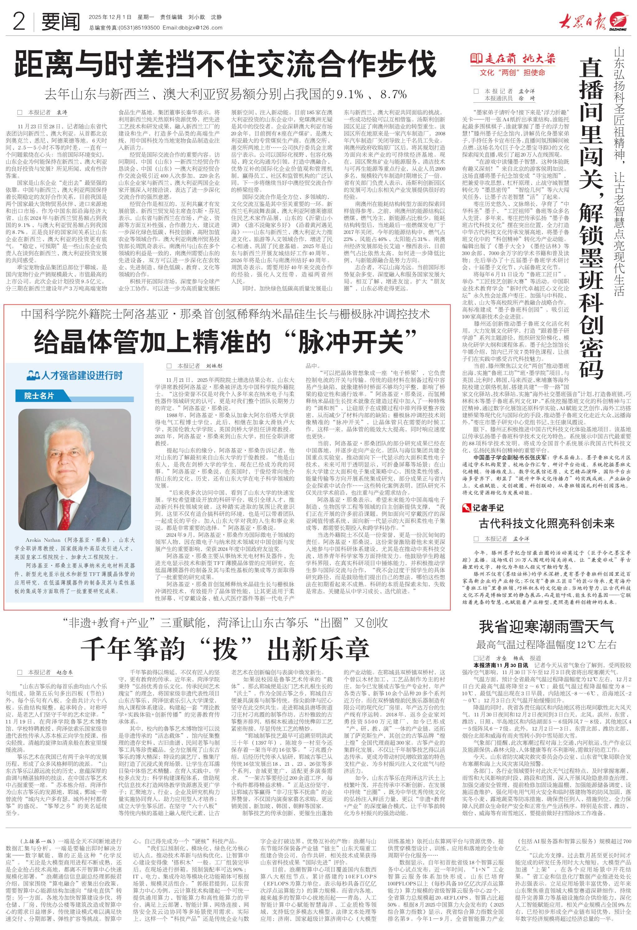 提起与山东的缘分,阿洛基亚·那桑告诉记者,他对山东的了解最初来自山东大学的于俊教授。“他是山东人,是我在剑桥大学的学生,现在已经成为我的同事。”阿洛基亚·那桑说,在英国时,于俊经常向他介绍山东的文化、历史,还有山东大学在电子科学领域的发展。