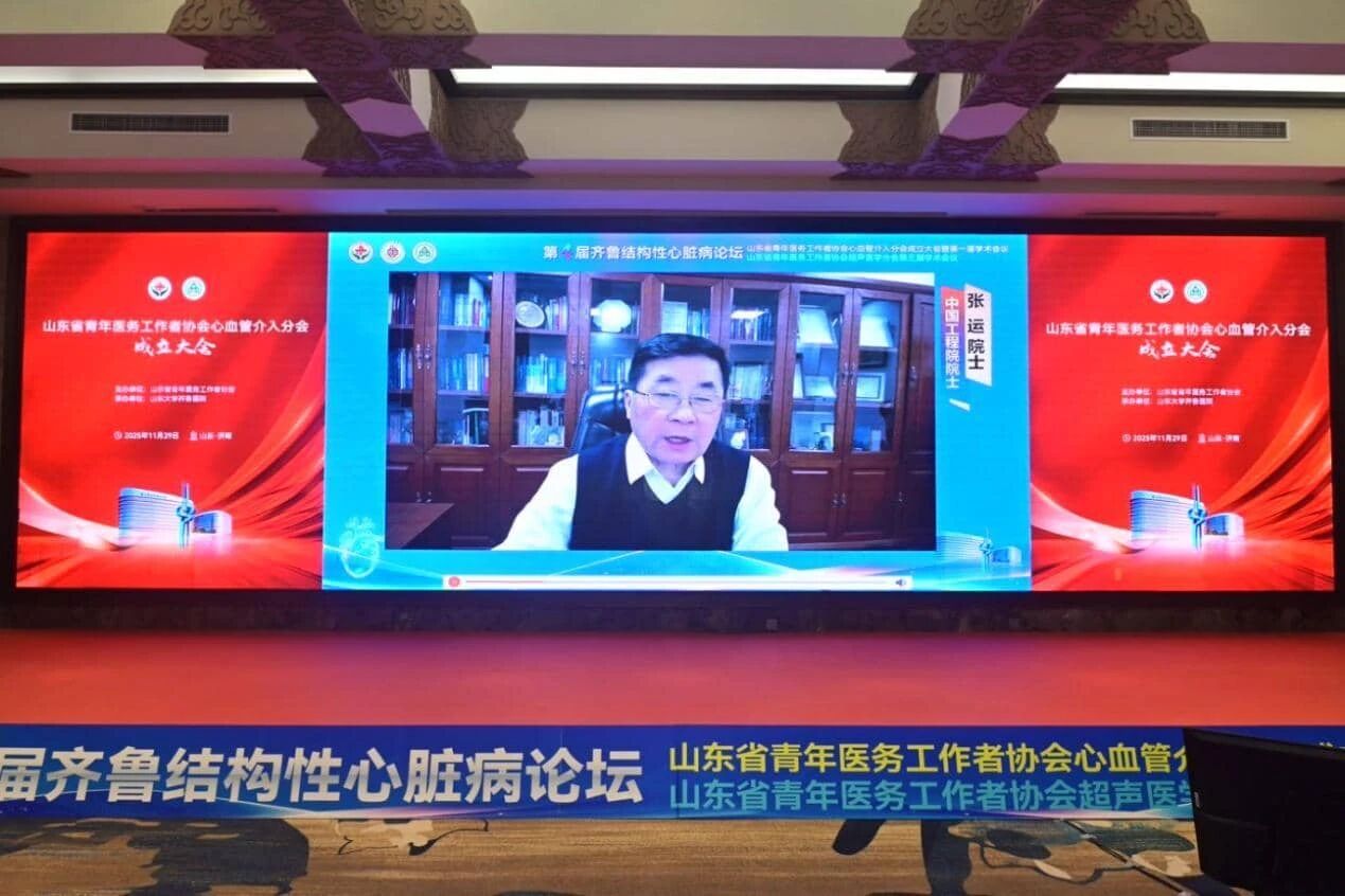 中国工程院院士张运对省青医协心血管介入分会的成立致以由衷的祝贺,并对山东省心血管介入事业的发展做出了充分的肯定。他指出,青年医生是国家医疗事业的生力军,省青医协心血管介入分会的成立,必将有效提升心血管介入诊疗领域的专业性与精准度,推动心血管介入医学事业进步发展。
