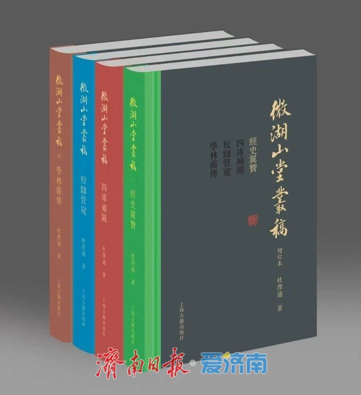 据介绍,《微湖山堂丛稿(增订本)》收入杜泽逊教授1986年至今撰写的论文、札记、序跋等210余篇,分为《经史翼赞》《四库补阙》《校雠管窥》《学林薪传》四册,附珍贵图片140余幅。大体分为目录学、版本学、校勘学、藏书史、古籍考释和序跋、杂忆等方面的文章。《经史翼赞》册收入有关《十三经注疏汇校》《清人著述总目》《清史·典籍志》等的专题研究论文;《四库补阙》册收入有关《四库全书》《四库总目》等的研究论文;《校雠管窥》册收入版本学、目录学、校勘学及藏书史相关讨论;《学林薪传》册收入对学术史及学界前辈的研究、回忆文章,为同侪、后辈新著撰写的序言等,并附访谈四篇。此书初版于2014年,此次做了大幅增订,增补文章70余篇,并按主题重新编排分册,