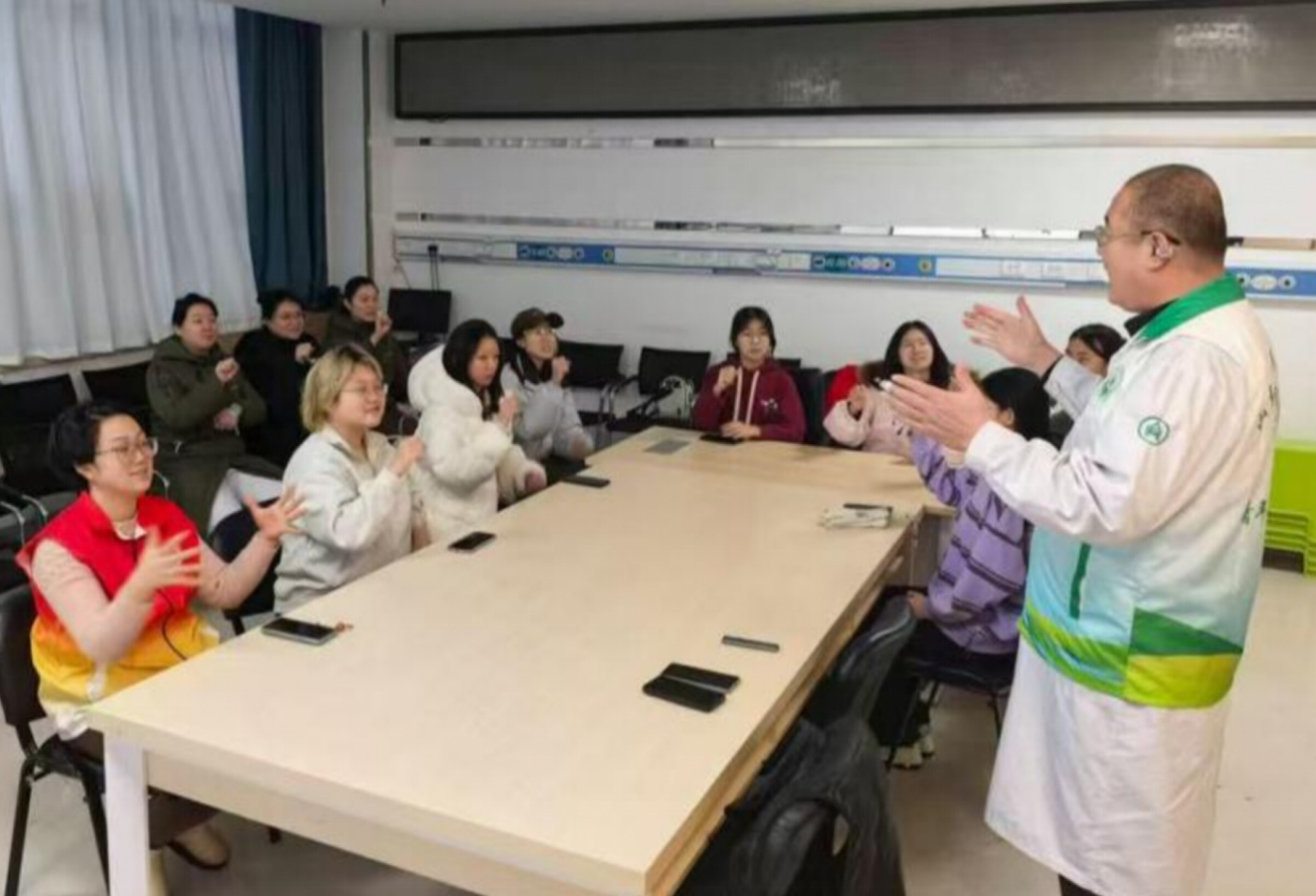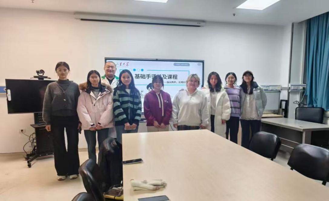活动初期,实践队邀请山东大学齐鲁医院王瑞、济南泉城志愿服务队成员董方作为手语指导老师,为队员们开展了一场生动的手语入门培训。老师从手语的基本概念讲起,阐述其作为一门视觉性语言的重要地位,不仅是听障人士沟通的“声音”,也是连接无声与有声世界的桥梁。随后,老师们通过演示和互动,教学了日常问候、数字表达、紧急用语等常用手语词汇。队员们认真模仿、反复练习,逐渐熟悉了手语的基本节奏与空间表达方式,为后续推广活动打下扎实基础。