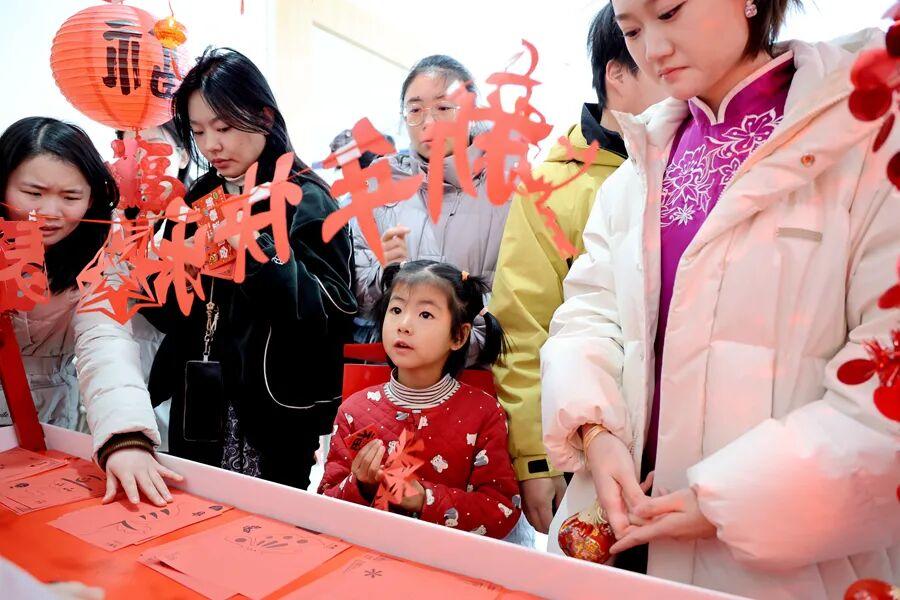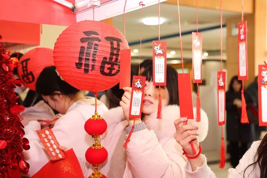 “一马当先・福字迎春”专区,同学们写春联、拓福字,笔墨间饱含新春祝福与期许;“马到平安·香囊纳福”“马载祥瑞·剪窗迎春”“马踏青波·漆扇绘春”等市集体验项目,让大家沉浸式感受传统民俗魅力。集章卡游戏区人气爆棚,手脑挑战、趣味投掷、击球比拼……师生们闯关集章,欢声笑语不断。