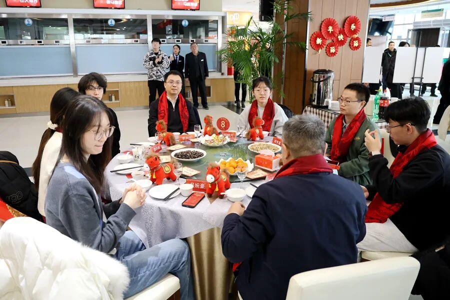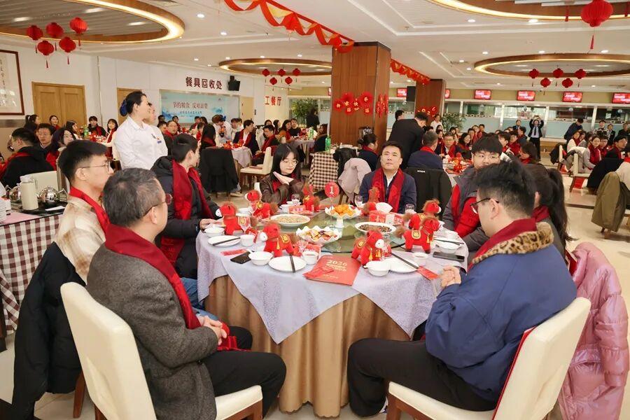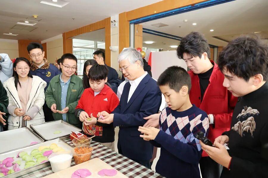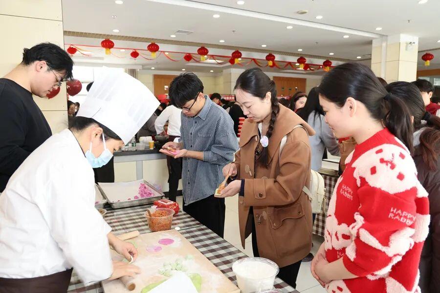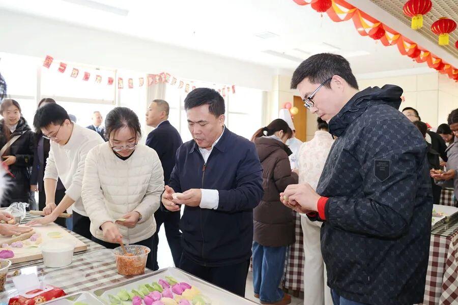 包饺子依旧是团圆饭的重头戏。校领导、师生们分工协作,揉面、擀皮、包馅,动作娴熟默契。一个个饱满圆润的饺子,包裹着深厚情谊与新年的美好祝福。