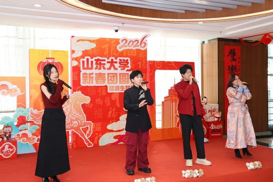 2月8日,腊月二十一,山东大学2026年新春团圆饭暨师生联欢会在中心校区举行。留校师生欢聚一堂,共赴团圆盛宴,同贺马年新春。山东大学党委书记李忠军、校长李术才出席。