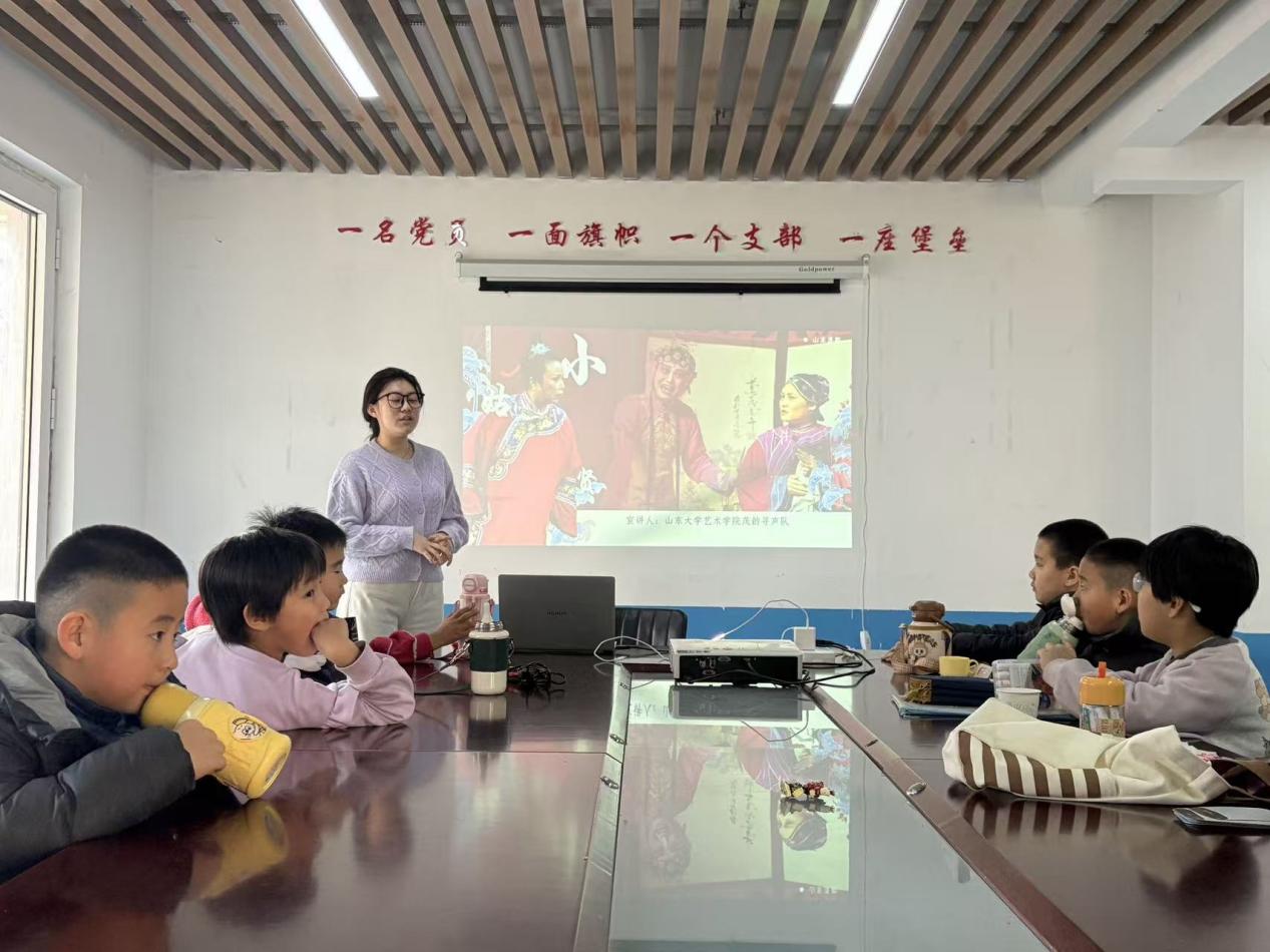 戏剧课上,支教老师引领孩子们走进非遗茂腔的艺术世界,共同赏析《赵美蓉观灯》《罗衫记》等经典剧目。孩子们切身感受了其质朴泼辣的风格与鲜活的生活气息。活动不仅加深了大家对地方戏曲的直观认识,更让他们在体验中真切体悟非遗传承的时代意义。