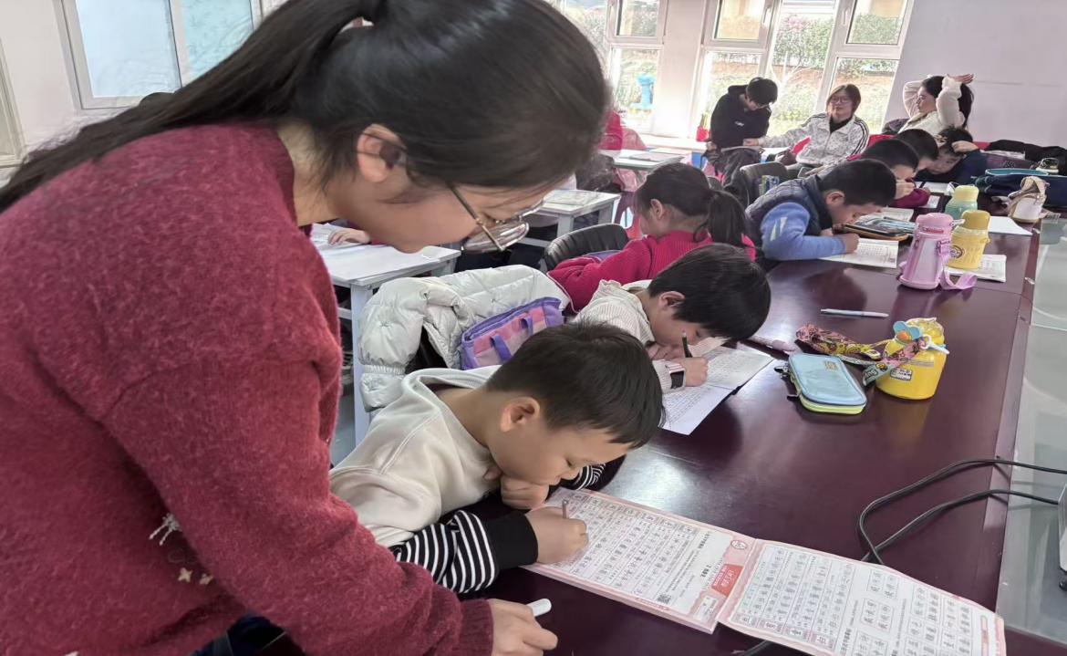 在专属的课前时光里,支教老师化身成为孩子们身边的“解题小帮手”。课桌前,他们耐心聆听每一个稚嫩的提问,将复杂的解题步骤拆解成易懂的语言,为孩子们解答每一个难解的问题。在这里,知识不再是遥远的概念,而是化作一句句鼓励、一次次点头、一双双逐渐亮起的眼睛。