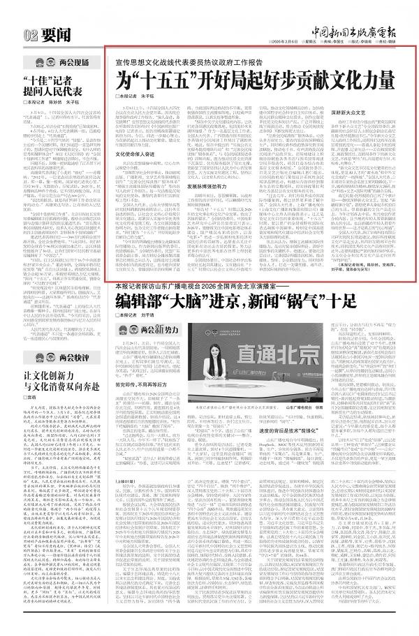 “发展哲学社会科学事业,推动新闻出版、广播影视、文学艺术等领域精品创作”“完善全民阅读推广服务体系”“增强主流媒体国际传播能力”等内容写入政府工作报告,每一句话都是沉甸甸的文化使命,激励代表委员们在新征程上笃行不怠。