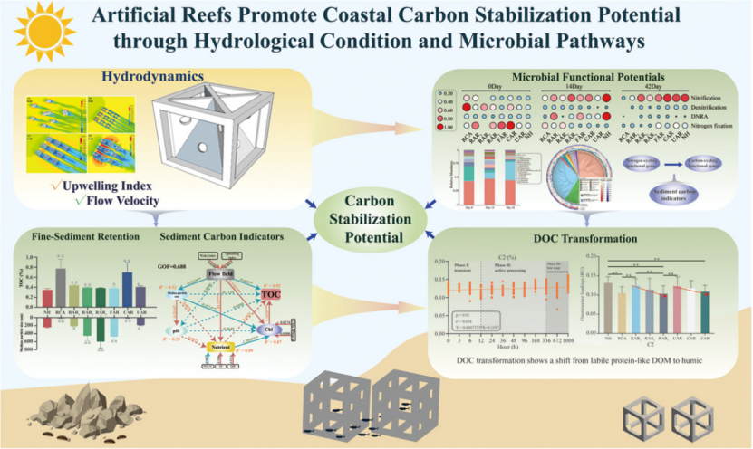 研究揭示人工鱼礁促进海岸碳稳定机制 山东大学供图