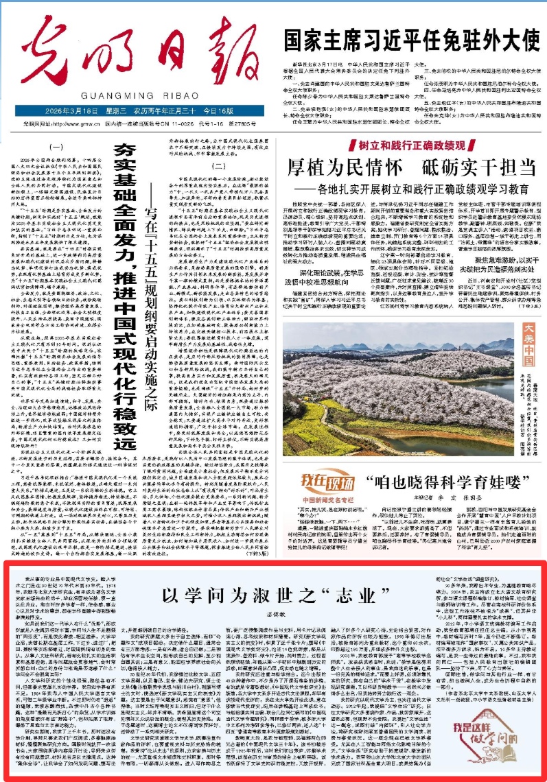 20多年来,我跨出本专业,为基础教育略尽绵力。2004年,我主持成立北大语文教育研究所,参与语文课程标准修订、教材编写、社会调查与教师培训等工作。尽管在高校科研评价体系中,这些工作往往不被视为“成果”,但其并非“小儿科”,同样需要扎实的学术支撑。