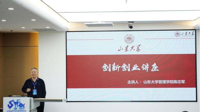 在“名师论道”环节,山东大学管理学院陈志军教授以《创新创业者的素质、目标与路径》为题作专题分享。陈志军教授系国家自然科学基金与社科重大项目子课题负责人,其主讲的《战略管理》《集团公司管理》等课程深受学生好评。他围绕创新创业者的基本素养、管理素质与境界、目标定位及实践路径三个维度展开系统阐述。